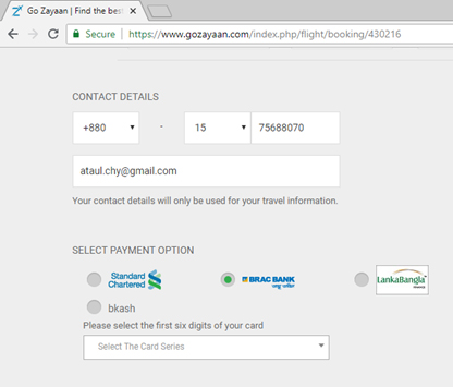 Customer can see the discount calculated amount readily on Gozayaan website. When BRAC Bank card’s first six digits are selected while payment, cardholder will automatically enjoy the discounted fare.