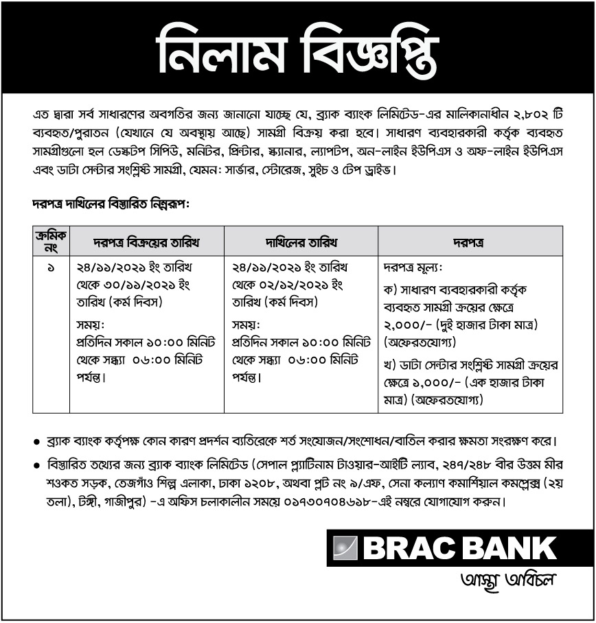 List of Unclaimed Deposits of valued BRAC Bank Customers