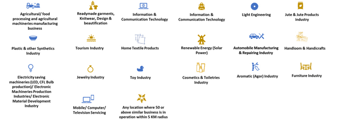 অনেক গ্রহণযোগ্য খাতে জড়িত সিএমএস এন্টারপ্রাইজগুলোর (বাংলাদেশ ব্যাংক এসএমইএসএফ সার্কুলার ২, ২০১৯